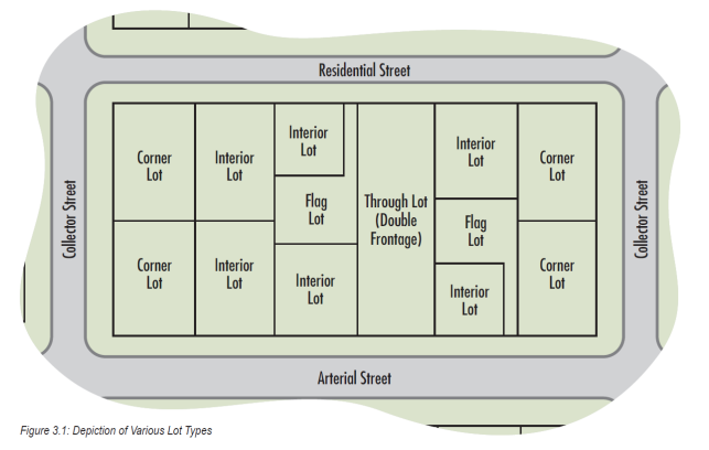 Lot Size Requirements: Restrictions on the dimensions of a lot. See Figure 3.2.