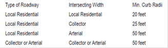13. Roadway pavement at intersections shall be rounded by the following minimum radii: