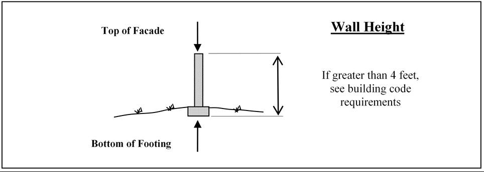 1. In general, permits are not required for retaining walls which are not over 4 feet in height measured from the bottom of the footing to the top of the wall, or for terraced retaining walls that are separated by more than their cumulative height.