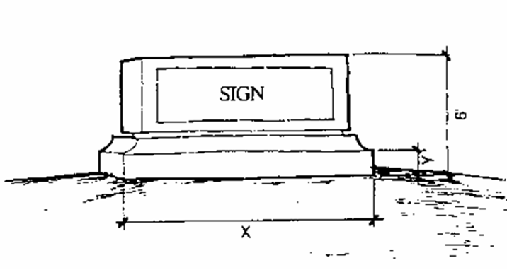 (3) Monument Sign: Any sign whose base is greater in width than the face of the sign, and whose height is no greater than 6 feet.