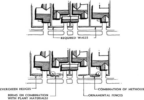 B. A patio or atrium dwelling unit’s street face (where applicable) may be articulated to avoid monotony. The wall requirement shall be eliminated in favor of some combination of the wall and one or more of the techniques shown in Figure 08.141.