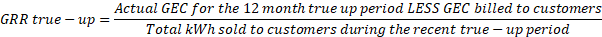 (b) The Generation Recovery Rider (GRR) shall be calculated as follows and billed as a separate line item on customer bills. Projected generation equipment costs (GEC) are based on all known factors such as loan payments and other fixed charges: